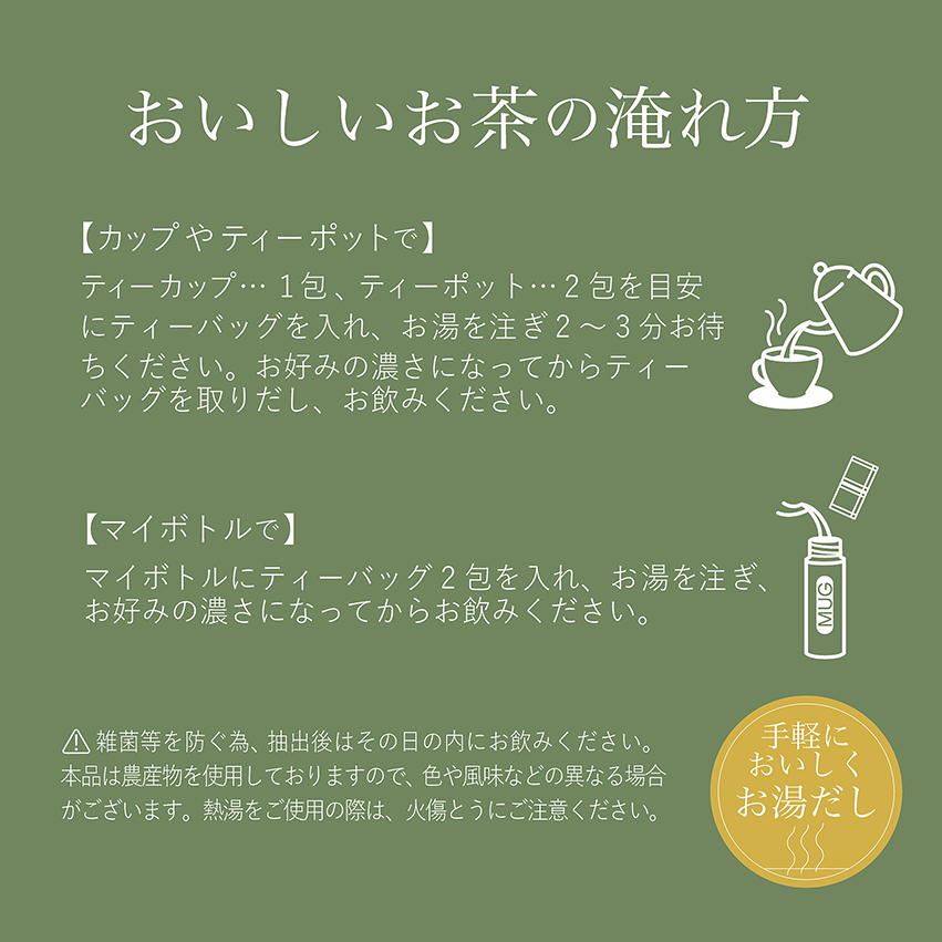 「苦み」や「えぐみ」を取り、植物の成分と味を引き出す「深味焙煎」健康茶 茶師としてつつじ賞を受賞した茶師監修の、こだわりの一杯です。
